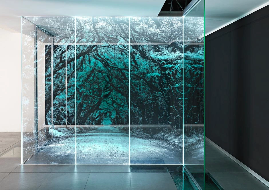 Uporaba stekla prav tako omogoča vpogled v dogajanje za steno, kar ustvari povezavo še bolj presenetljivih podob.
