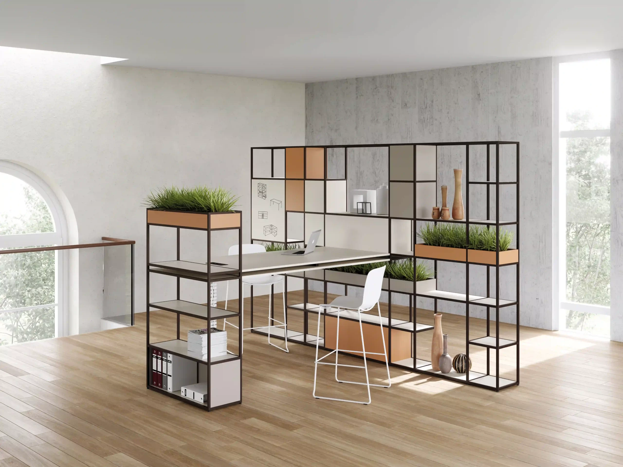 Prilagodljiv regalni sistem Q18 podjetja Alea office predstavlja večnamensko modularno konstrukcijo, ki s svojo zasnovo vnese edinstven karakter v katerokoli poslovno okolje.