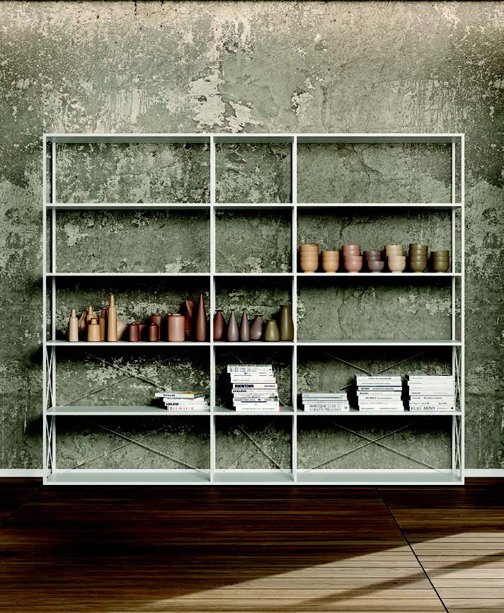 Osnova regala je sestavljena iz aluminijaste cevne konstrukcije s prerezom 18×18 mm v katero so lahko vgrajeni paneli in moduli zabojnikov. Zaradi premišljenega pritrdilnega sistema, ki združuje aluminijaste dele, je izdelek eleganten in čist, brez vidnih vijakov.