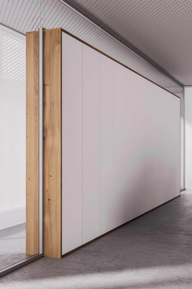 Predelna oziroma pregradna omara predstavlja predelno steno opremljeno z modularnimi elementi različnih širin za skladiščenje. Omara je sestavljena iz vertikalne nosilne konstrukcije in nastavljivih izravnalnih nog. Popolno tesnjenje na tleh in stropu zagotavlja neprekinjena aluminijasta podlaga skupaj s kompenzacijskimi tesnili. Stena je zaključena z odmiki, vogali, končnimi stranicami in kompenzacijskimi elementi ter se brezhibno integrira s predelno steno.