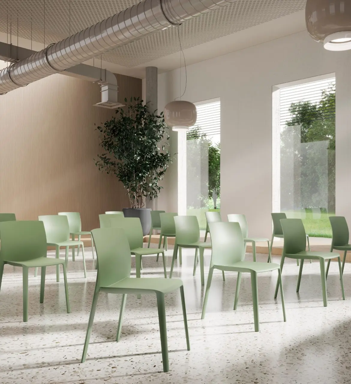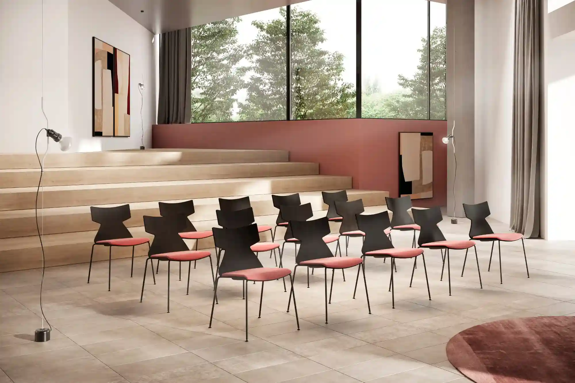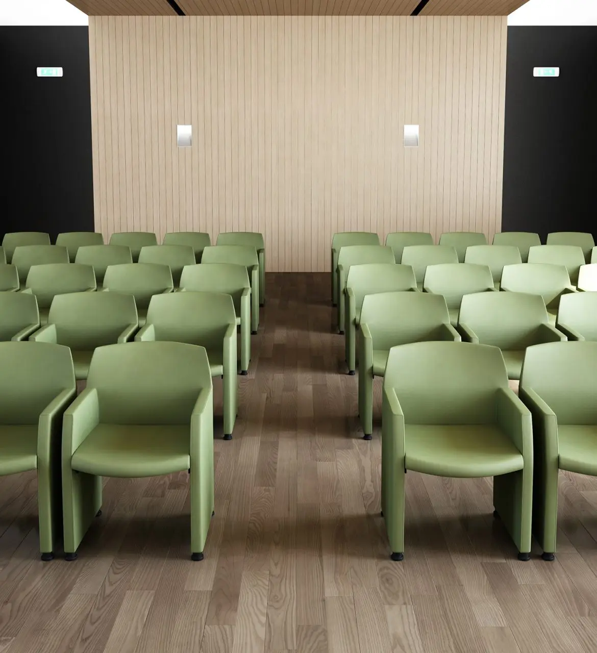 Pri celostni opremi poslovnega prostora pozornost prav tako namenimo večnamenskim sobam za konference, predavanja ali dogodke. Premični stoli za predavalnice, predavanja in dogodke so na voljo v različnih materialih, barvah ter z različnimi sistemi.